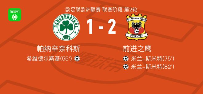 10月3日,北京的时间,第二届UEFA UEFA UEFA UEFA EUEFA EUROPA联赛开始了,Panasinaikos面临着进步的老鹰队。在游戏中,Panathinaikos首先得分,在获得Tate的帮助后,Shivedelski得分。然后,老鹰队发动了反击,米兰·斯米特(Milan Smitt)在迪恩·詹姆斯(Dean James)的协助下提高了比分。在比赛结束时,迪恩·詹姆斯(Dean James)再次提供了帮助,米兰·斯米特(Milan Smitt)再次得分并完成了双分。最后,Panathinaikos高级鹰的得分冻结了1-2。在55分钟的美好时光中,Panathinaikos球员Tate帮助Sibilski得分。在第75分钟,老鹰队的前锋迪恩·詹姆斯(Dean James)帮助米兰·史密斯(Milano Smitle)进球。在第82分钟,老鹰队的前锋迪恩·詹姆斯(Dean James)帮助米兰·斯米特尔(Milano Smitle)进球。设备对齐的技术统计数据