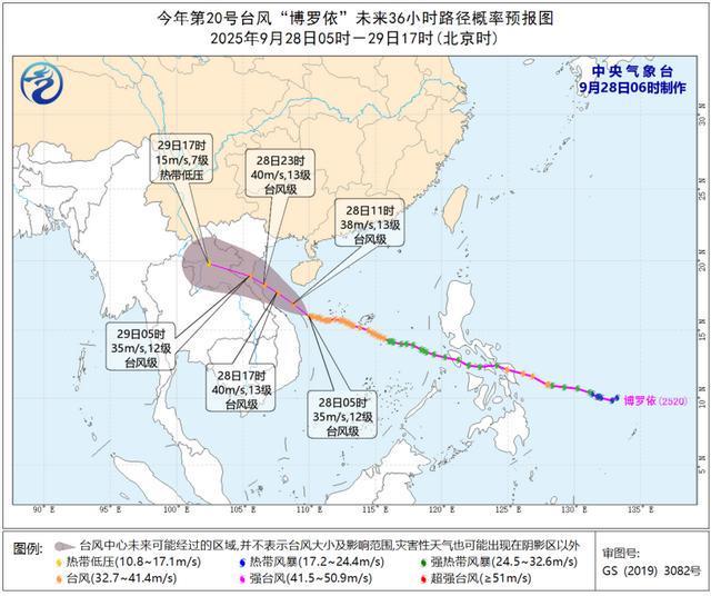 中央气象天文台继续在9月28日的6:00播放黄色台风警告。今年的“ Boroi”台风预计今天将通过海南岛以南(28)的海洋(28)的海洋,以每小时25-30 km的速度向西北行驶。力量得到加强,并逐渐接近越南北部的海岸。从28日晚上到29早上,他以Typho水平(35-40米/秒,12-13)降落在中心的海岸和越南以北,逐渐减弱。强烈的风预测:从8:00到29至28至29,在南中国海,贝贝湾和Qiongzhou的大多数地区,6-8级的风将有强风,阵风在9-10级。其中包括9-10的风,阵风在中国南部中部和西部地区的几个水域以及中国南部的几个水域,以及张夏南部,Xisha和Hainan岛的沿海地区。穿过台风中心的Aguas和附近地区的风可以到达Levels 14-15,风爆发。降水量预测:大雨将落入某些地区,包括8:00至28至29。从8:00到28到29。中央气象观测值继续在9月28日6:00播放一警警告,在9月28日的6:00警告降雨。预计大雨将越来越多地降雨,东北地区的某些地区会越来越多地降雨。西部和西北的西部和西北部的西部和西北部的西部和西南部西部和西北。地方。其中包括Shaankshi南部,四川盆地北部和中部岛屿的某些地区,在海南岛东南部(250-280毫米)的某些地区举行了强烈的大雨。以前的某些区域在短期内被大雨造成的区域(每小时最大降雨为20-50毫米,超过60毫米的本地是的)。它伴随着当地强烈的对流气候,例如雷暴和强风。