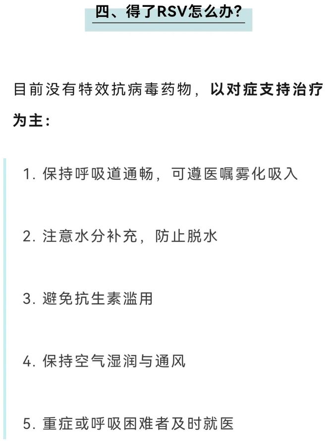 秋冬季节是各种呼吸道感染最容易发生的季节。记者从江苏省疾病预防控制中心获悉,多种呼吸道病原体监测结果显示,除普通流感外,近期江苏省RSV活性均处于较高水平。 1.什么是呼吸道合胞病毒?呼吸道合胞病毒(RSV)是引起我国5岁以下儿童下呼吸道急性感染的病毒病原体之一。它是 1 岁以下婴儿因肺部感染(如细支气管炎和肺炎)住院的主要原因。主要通过飞沫和接触传播。 RSV感染季节受地理位置、温度和湿度的影响。冬春季节是发病率较高的时期。我国疫情高峰期一般为11月至次年4月年。大多数感染者表现出轻微的感冒样症状。然而,对于婴儿、早产儿、患有先天性心肺疾病的儿童或免疫系统较弱的人来说,它可能会导致严重的疾病,如细支气管炎、肺炎、持续性喘息或哮喘,以及活动耐受力降低。婴幼儿RSV感染可造成气道损伤,改变气道结构和功能,增加气道反应性,增加儿童哮喘的风险。研究表明,婴儿期感染 RSV 的儿童患哮喘的可能性是健康婴儿的四倍,而且这种肺功能下降可能会持续十多年。 2. RSV感染有哪些症状? RSV感染的潜伏期为2至8天,通常急性起病。轻度症状:鼻塞、流鼻涕、打喷嚏、咳嗽、低烧、咽痛等感冒样症状。严重症状:气短、喘息、3凹症状(胸骨上窝和吸气时肋间压下降),发绀。在成人中,RSV 感染通常表现为轻度感冒,但在免疫系统较弱的人或老年人中,感染可能会导致严重的并发症。 3、有哪些症状需要注意?出现以下症状时要小心: 婴幼儿:喂食困难、嗜睡、呼吸困难,甚至呼吸暂停、三凹征。老年人:伴有慢性疾病恶化(慢性咳嗽、呼吸困难等)。记住进步!采编:受陈宗 编辑:金钟 校对:罗丹硕 编辑:王跃海 来源:江苏省疾控、紫金山新闻